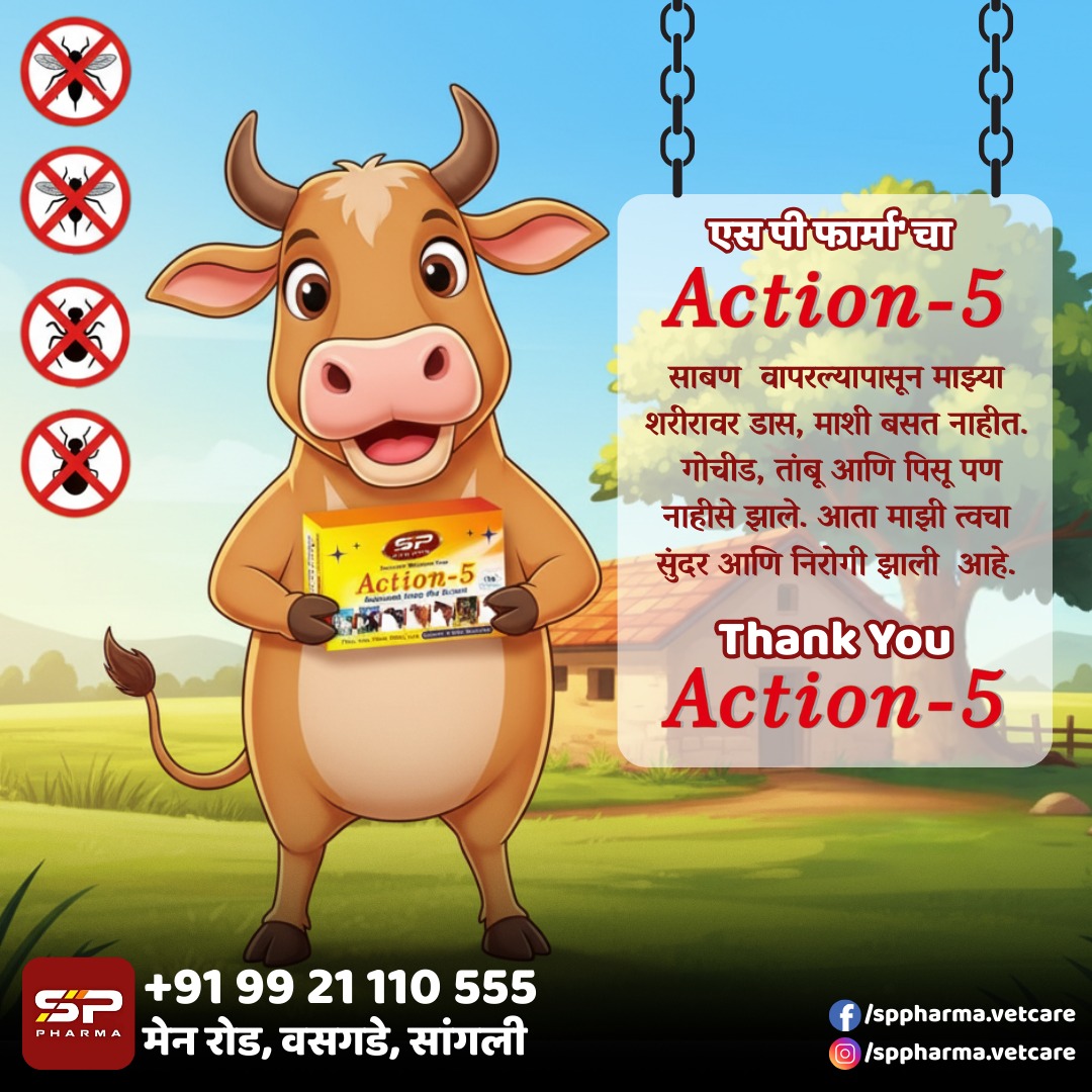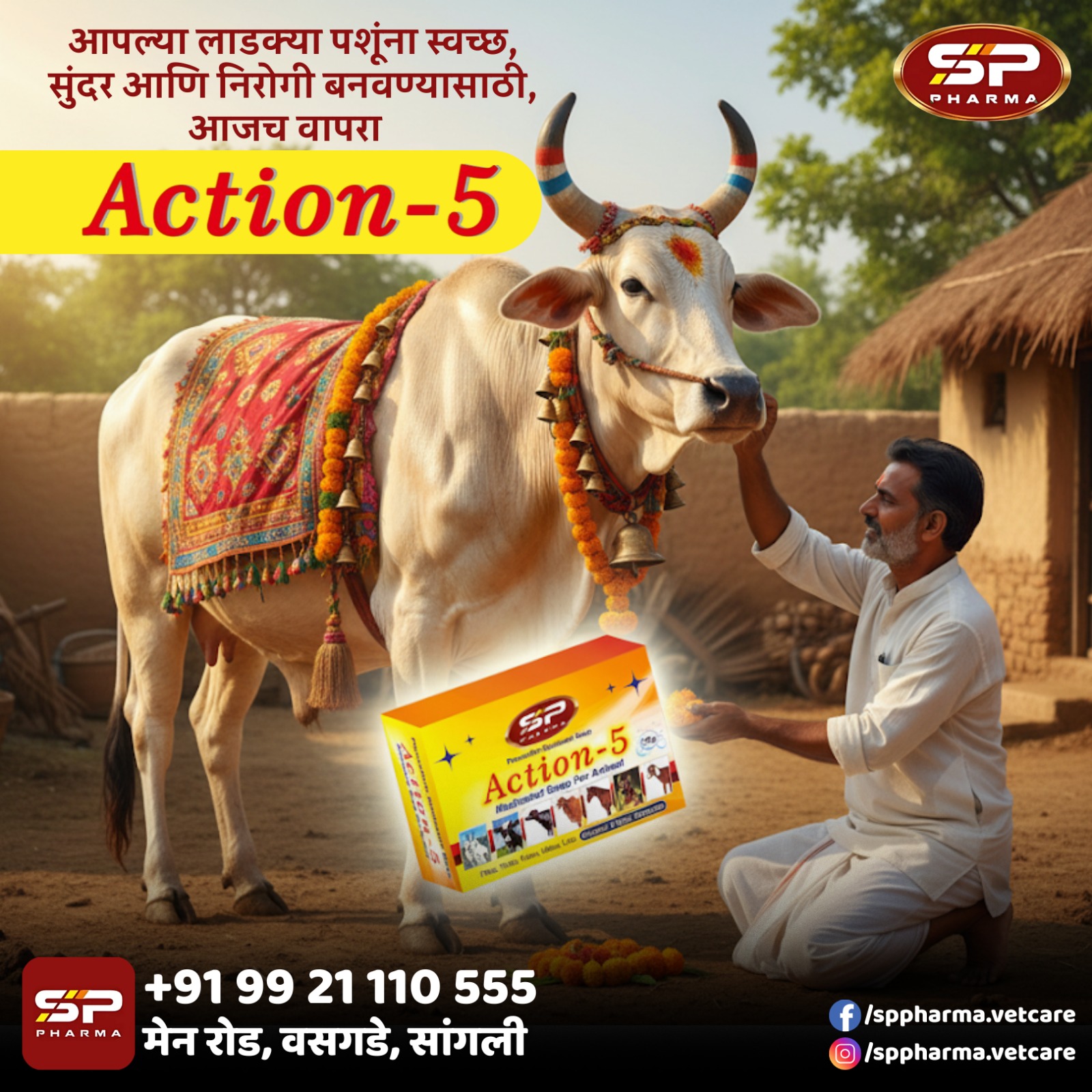 Visit SP Pharma in Vasagade, Sangli, today and protect your animals with Action 5 Soap. Contact us for details, usage advice, and bulk availability. Give your pets and livestock the care they deserve.